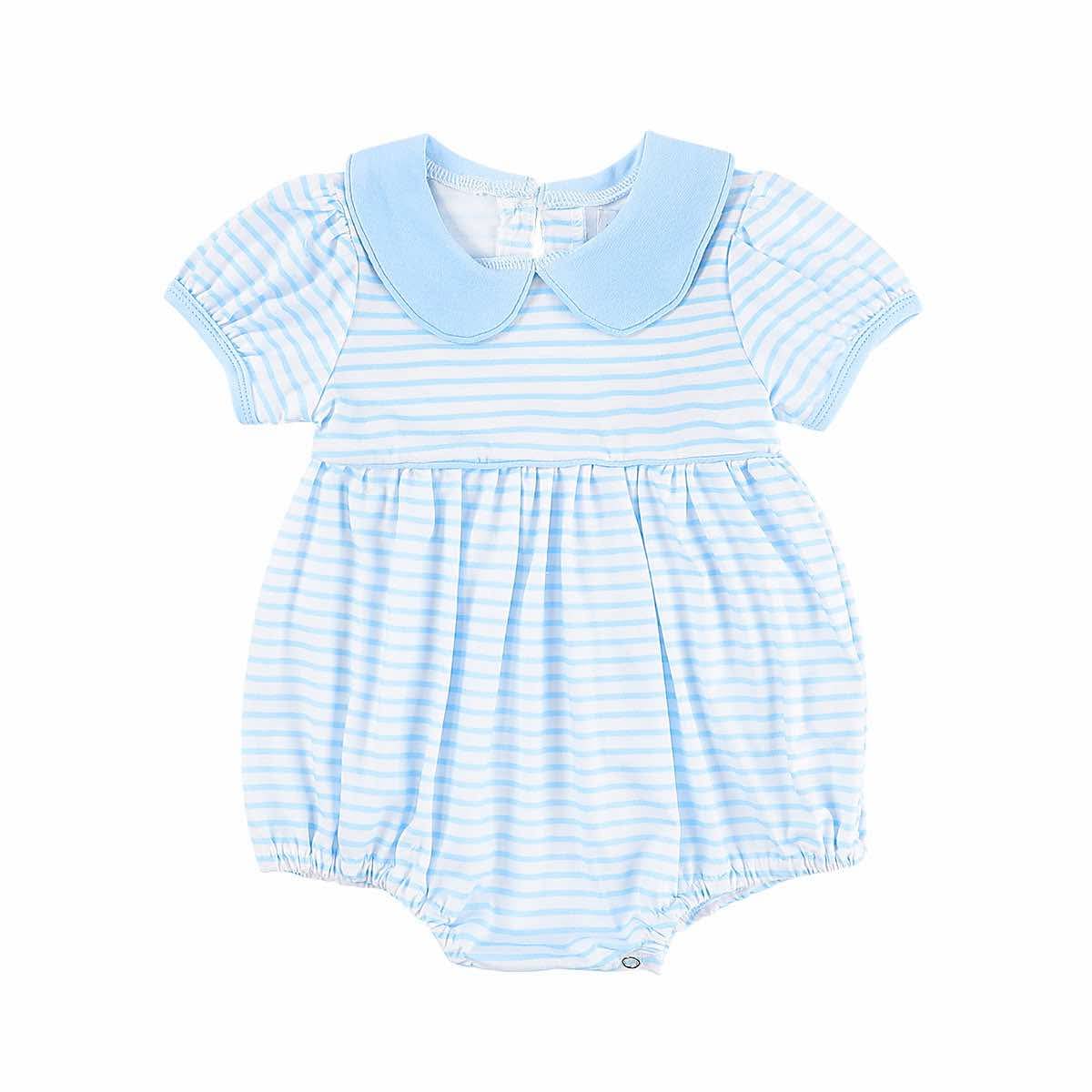 A charming staple for warm days, this knit blue stripe bubble is designed with comfort and classic style in mind. Featuring soft knit fabric with timeless blue stripes, this bubble offers a relaxed fit perfect for playdates, outings, and everyday wear. A sweet silhouette makes it an effortless go-to for spring and summer days.