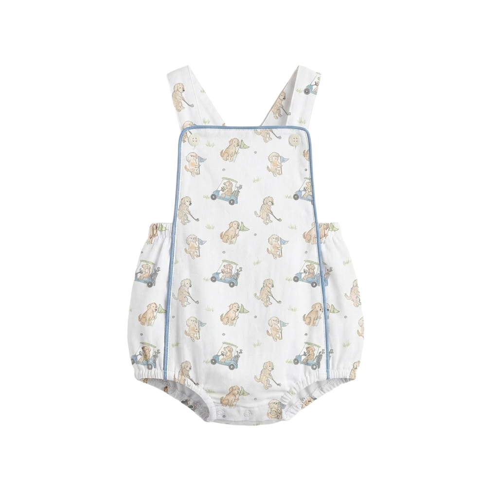 A charming everyday favorite, this knit bubble features our exclusive CBCB puppy golf print, perfect for little ones who love a classic look with a playful twist. Crafted from soft, breathable knit fabric with a timeless bubble silhouette, it’s ideal for playtime, outings, and comfortable all-day wear.