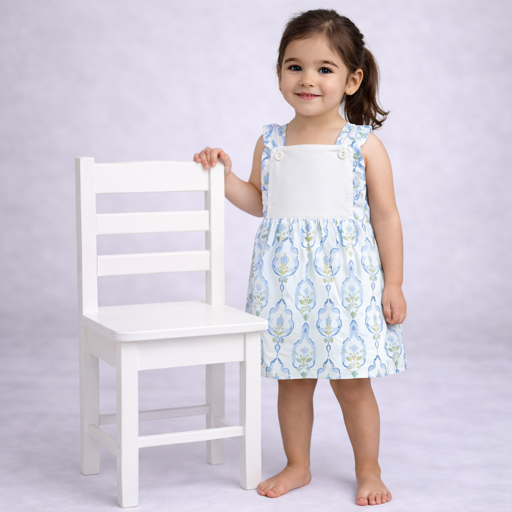 A picture-perfect piece for spring days, this floral dress features a delicate allover print paired with sweet blank to monogram for an extra touch of charm. Designed with a classic bubble silhouette and comfortable fit, it’s perfect for sunny outings, special occasions, and everyday springtime sweetness.
