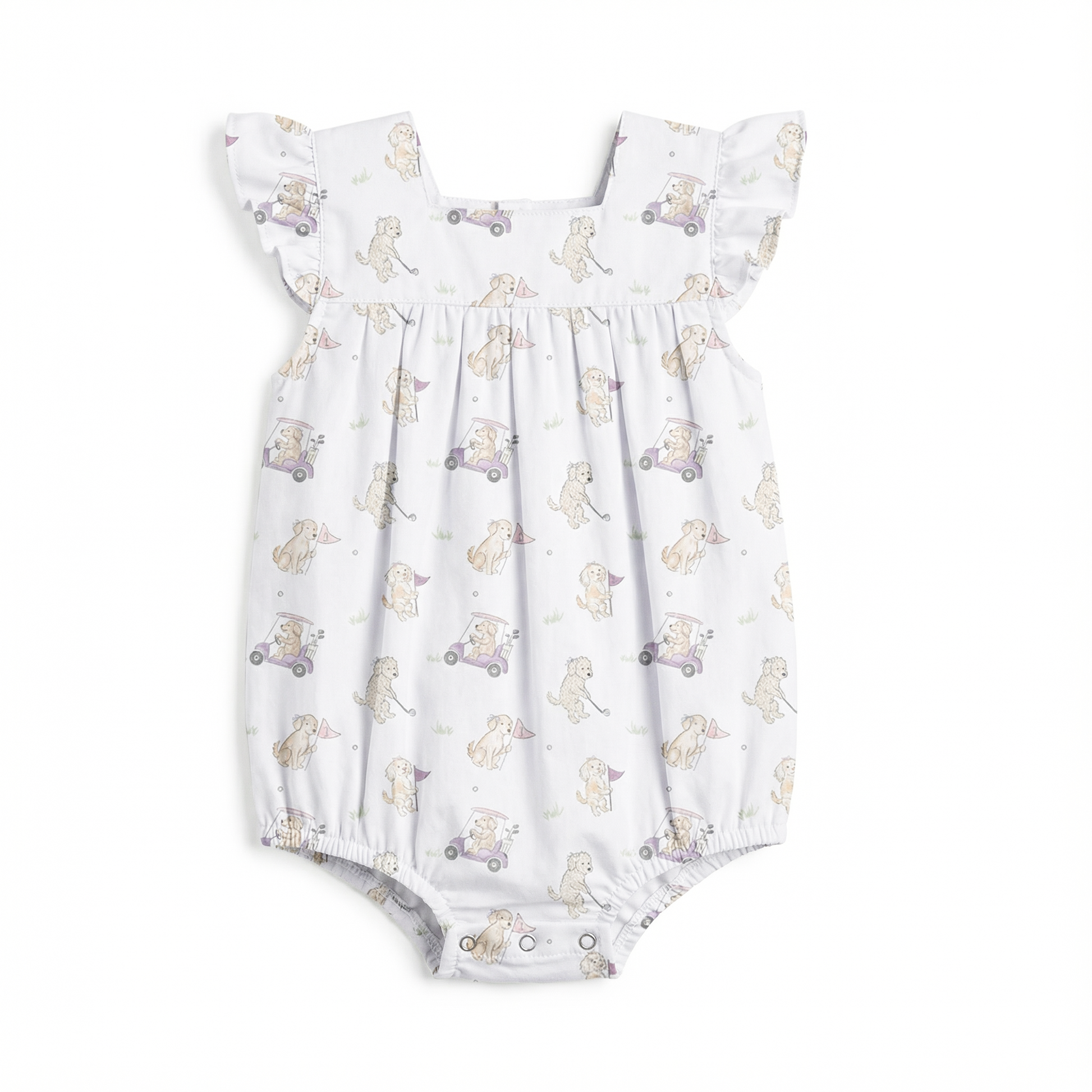 Adorable and comfortable, this knit bubble features our exclusive CBCB golf puppy print, designed to delight little ones and parents alike. Made with soft, breathable knit fabric and a classic bubble silhouette, it’s perfect for everyday wear, playtime, and cuddly spring days.