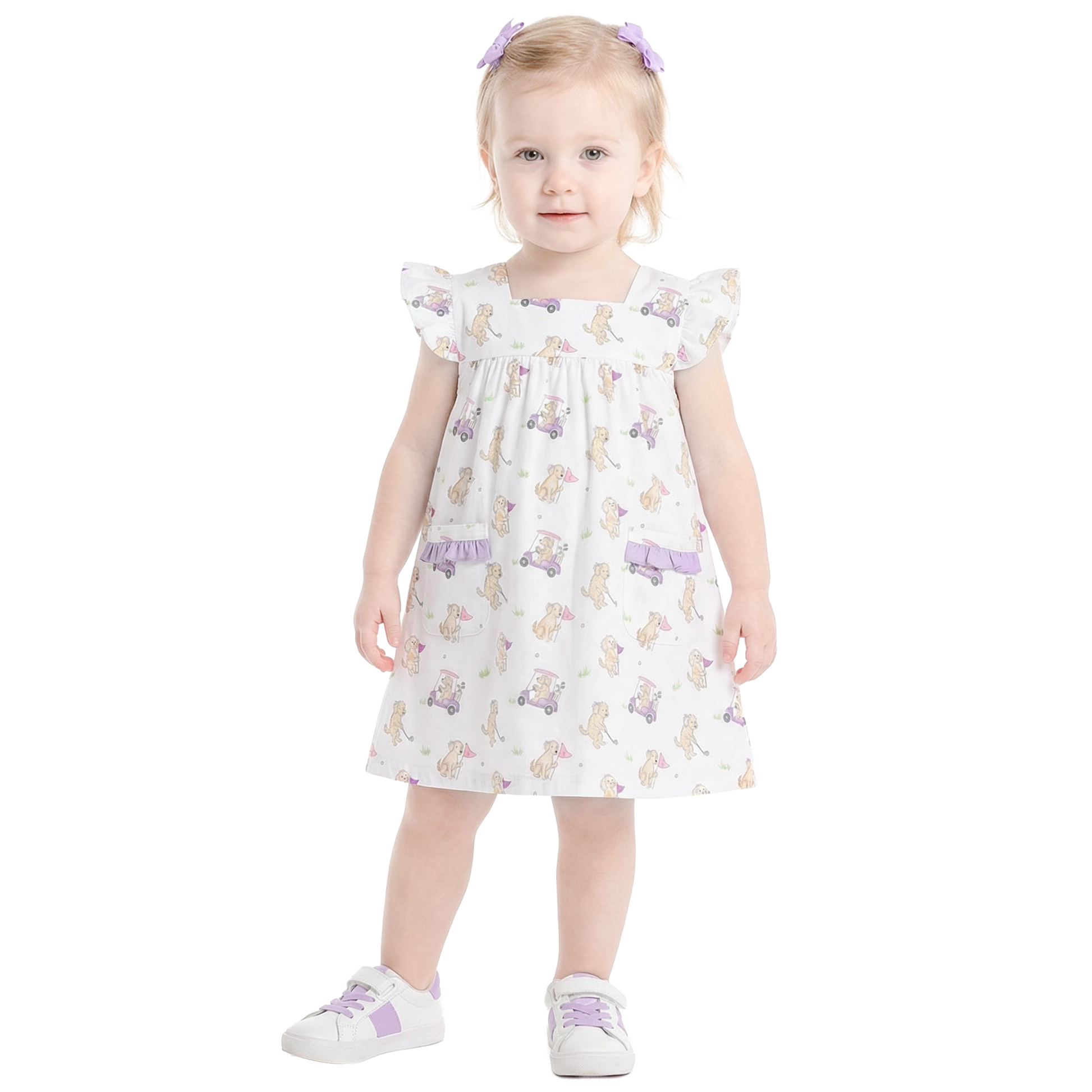 Adorable and comfortable, this knit dress features our exclusive CBCB golf puppy print, designed to delight little ones and parents alike. Made with soft, breathable knit fabric and a classic bubble silhouette, it’s perfect for everyday wear, playtime, and cuddly spring days.