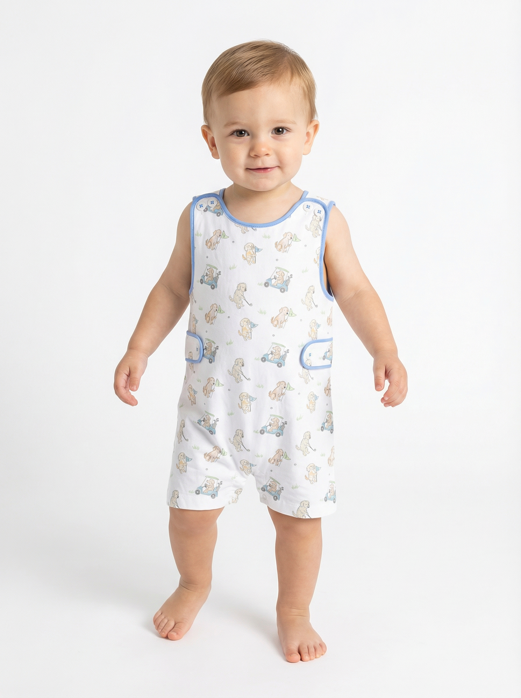 A charming everyday favorite, this knit jon jon features our exclusive CBCB puppy golf print, perfect for little ones who love a classic look with a playful twist. Crafted from soft, breathable knit fabric with a timeless jon jon silhouette, it’s ideal for playtime, outings, and comfortable all-day wear.