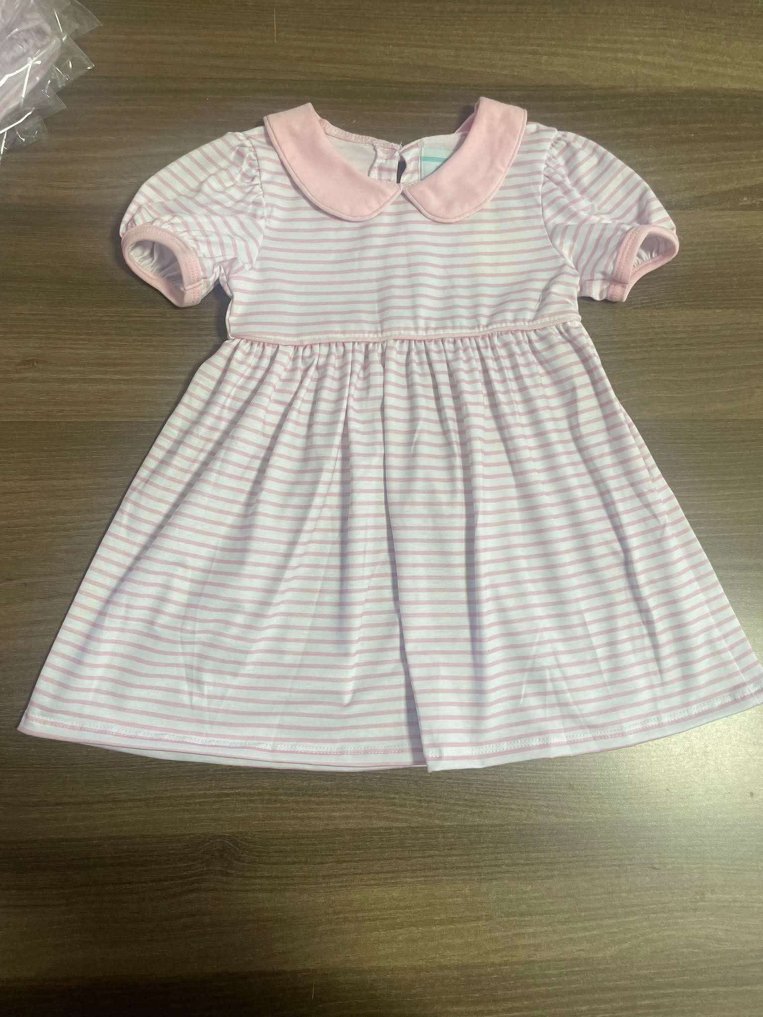 A charming staple for warm days, this knit blue stripe bubble is designed with comfort and classic style in mind. Featuring soft knit fabric with timeless pink stripes, this dress offers a relaxed fit perfect for playdates, outings, and everyday wear. A sweet silhouette makes it an effortless go-to for spring and summer days.